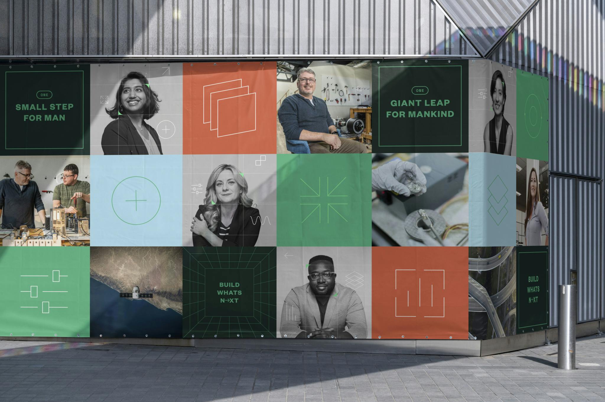 Evolving their current brand system, we combined abstract UI elements and software graphics with industry photography to create new relationships between “what they do” and “why they do it.” The system is made up of a kit of parts, combining the software challenge to the product outcome, through overlays, tiling and dimensional graphics.